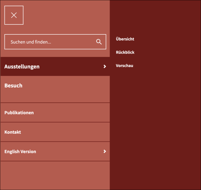 Im Menü finden Sie eine Liste mit allen Themen auf der Internet‐Seite.