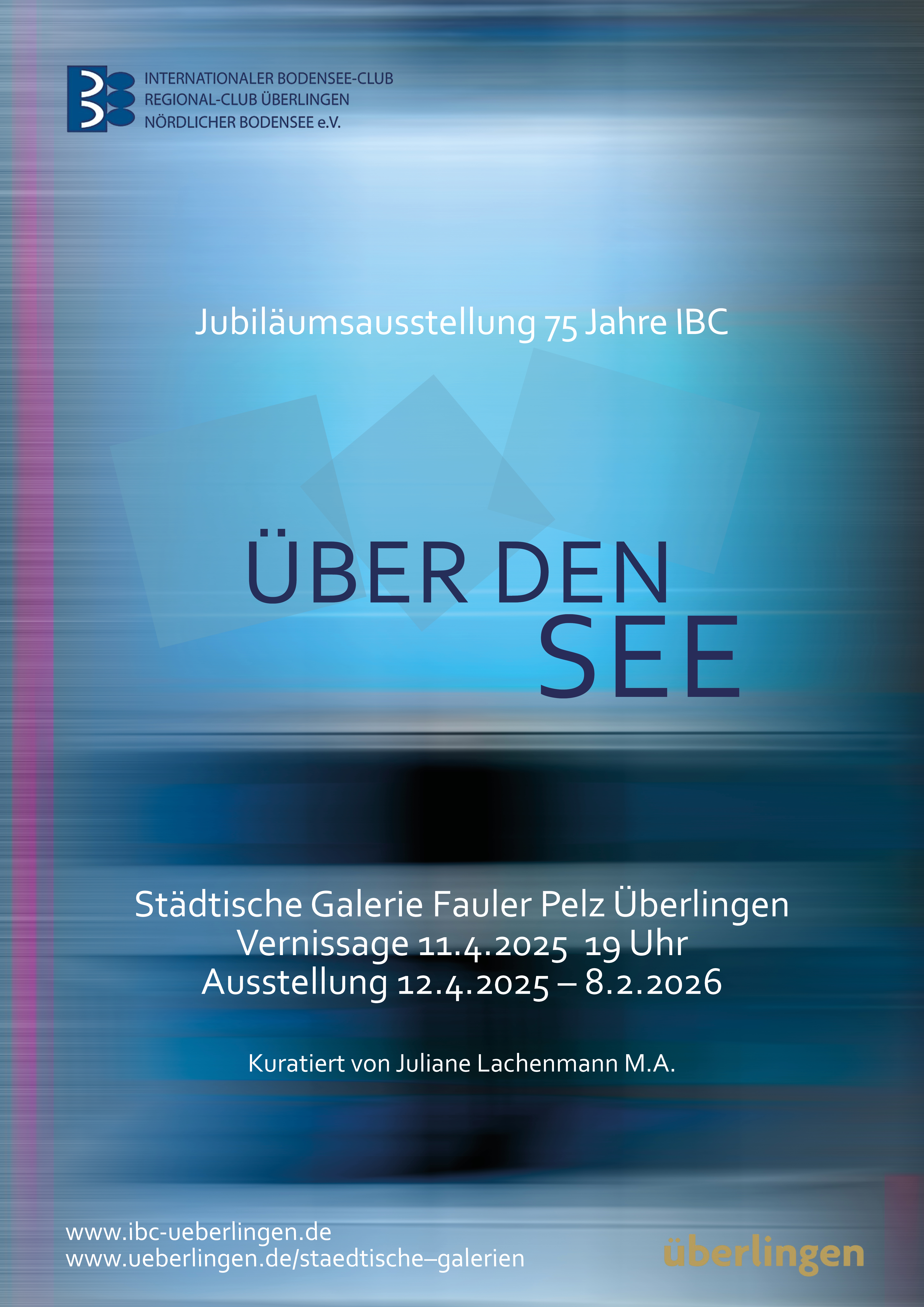 Der Internationale Bodensee-Club (IBC) feiert sein 75-jähriges Bestehen mit einer großen Jubiläumsausstellung in der Städtischen Galerie Fauler Pelz in Überlingen. Unter dem Titel "Über den See" werden aktuelle regionale Kunsttendenzen im Dialog mit ausgewählten künstlerischen Positionen aus der 3-Länder-Region Deutschland- Österreich-Schweiz präsentiert. 1950 in Überlingen gegründet, entwickelte sich der IBC rasch zu einer bedeutenden Plattform für Kunst, Literatur, Musik und Wissenschaft rund um den Bodensee. Besonders in den 1970er-Jahren zählten international renommierte Mitglieder zum Club. Heute setzen sich die beiden verbliebenen Regionalclubs Überlingen und Konstanz für den grenzüberschreitenden Kulturaustausch ein.